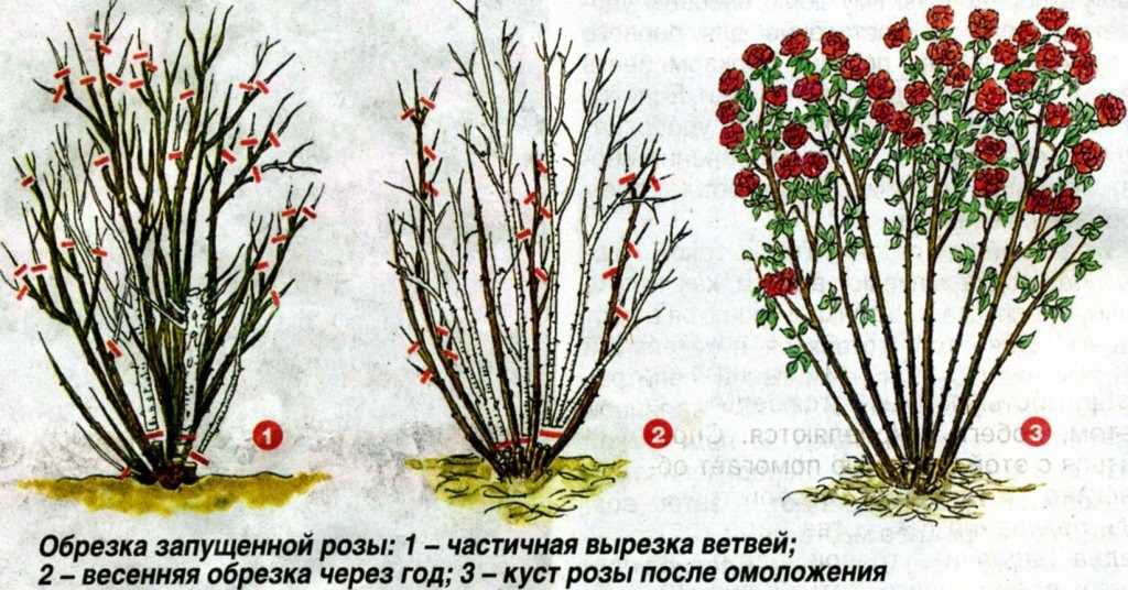 Некоторые сорта морщинистой розы предрасположены к интенсивному росту. Контролировать рост и направлять ветви помогает своевременно выполненная обрезка. Рекомендуемая схема обрезки декоративно-цветущего кустарника представлена ниже: