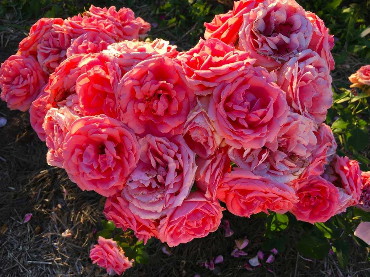 Позже их вытеснили розы сорта флорибунда, сегодня их все чаще можно встретить в садово-парковом дизайне при создании цветочных ярких бордюров или в групповых посадках. Несомненным преимуществом этой группы – непрерывное и обильное цветение в течение всего летнего сезона до поздней осени.