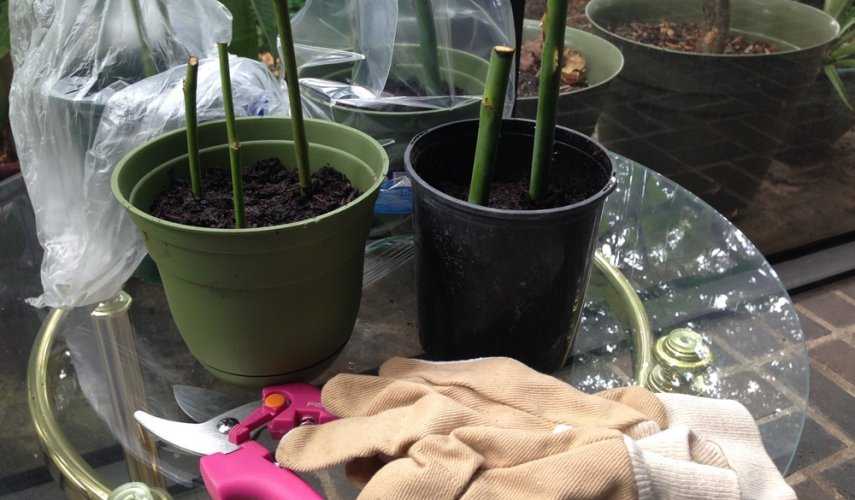 Черенки нарезают в начале июня, желательно ранним утром. Их длина — 12–15 см, на каждом должно быть 3–5 ростовых почек. Нижние листья убирают полностью, верхние два-три подрезают наполовину.