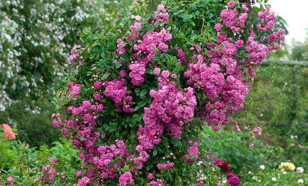 Кусты плетистых роз размещают на расстоянии, чтобы они не мешали друг другу.