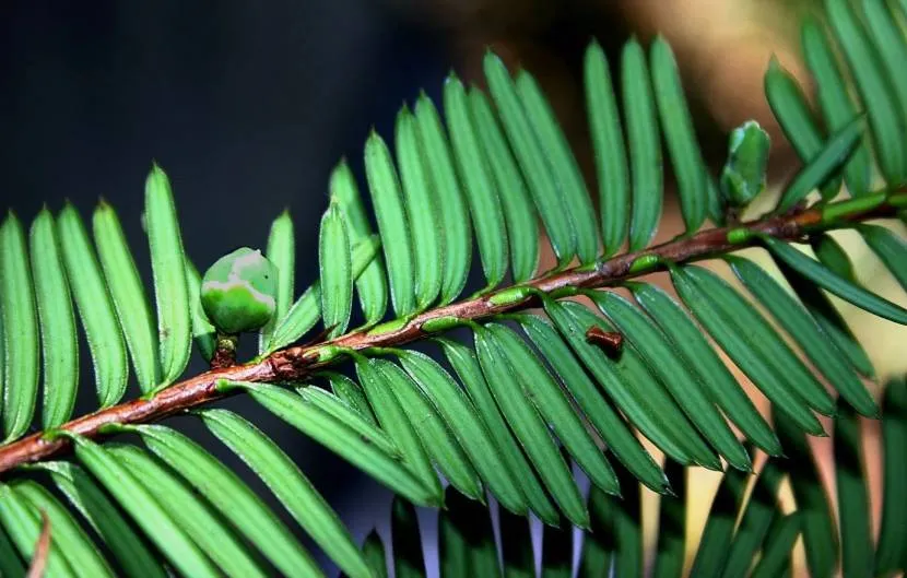 - Тис ягодный (европейский) – ядовитое растение, в котором опасно практически все, от древесины до иголок. Плоды по форме напоминают открытый сверху бокал; сама сочная яркая мякоть съедобна, но семена в присеменнике крайне ядовиты.