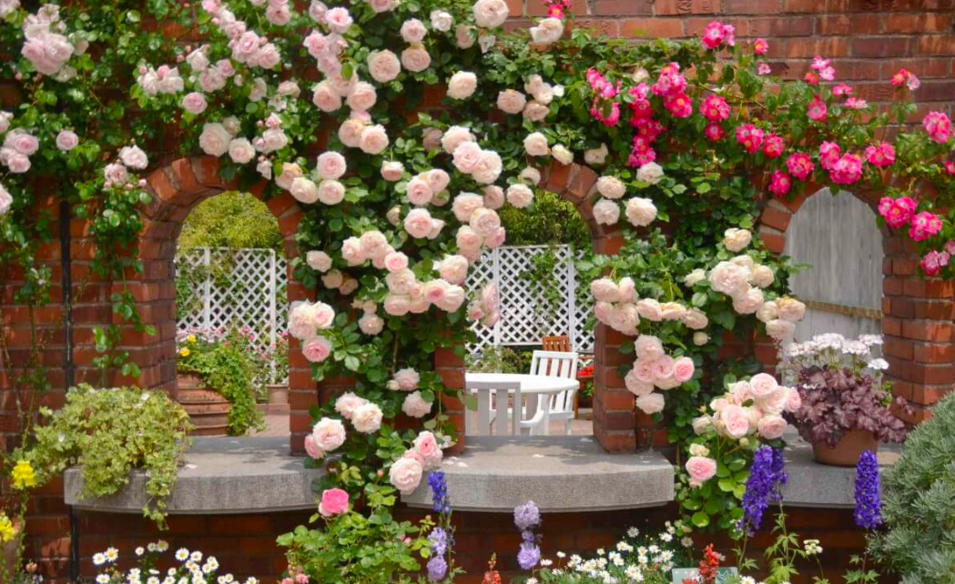 Розами можно заполнить клумбы, контейнеры, рабатки. Почвопокровники — отличное обрамление для дорожек, а плетистые и флорибунды — настоящие ширмы, которые могут украсить собой не слишком презентабельный фасад дома или сокрыть двор от глаз вездесущих соседей.