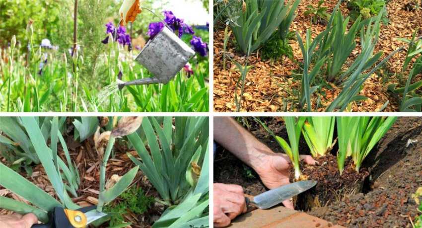 Уход за ирисами в осеннее время заключается в следующих мероприятиях: