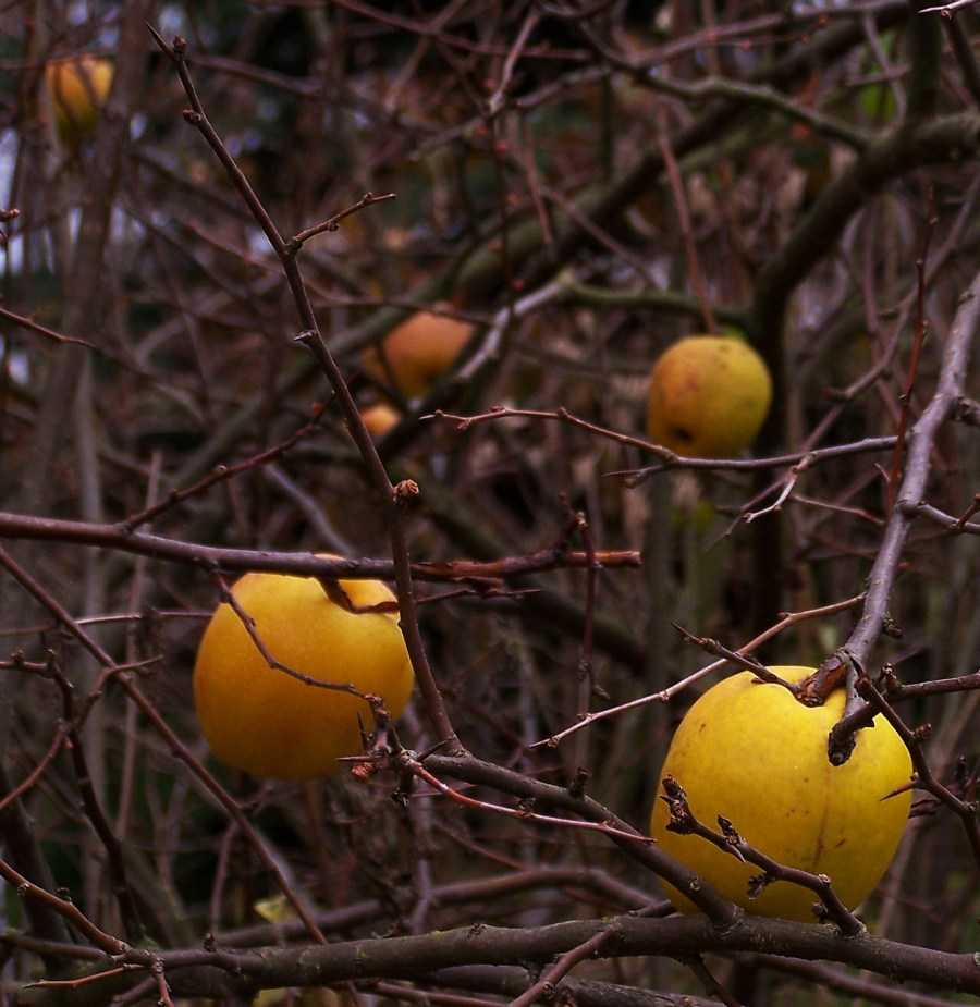 Хеномелес прекрасный. Родом из Западного Китая. Кустарник средней высоты. Листья крупные (7—15 см длиной). Цветки белые. Плоды крупные (до 10 см в диаметре и массой до 300 г), грушевидные.