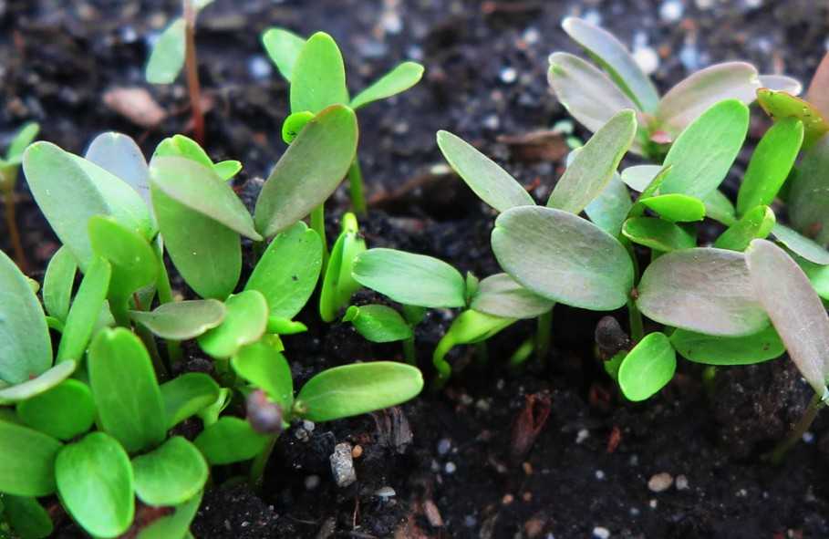 - Проредить взошедшие ростки, когда у каждого из них вырастет по 2 листочка. Оставить только самые крепкие саженцы. Расстояние между ними должно быть не меньше 3 см.