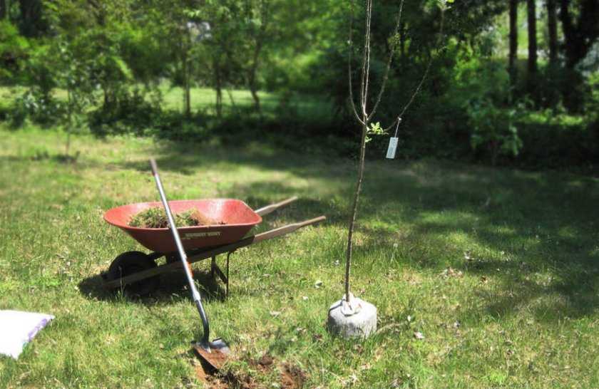 На юге плодовые культуры высаживают осенью, когда пройдет листопад. За несколько недель до похолодания деревья успевают адаптироваться и подготовиться к зиме. Если ожидается раннее похолодание, то работы лучше отложить на весну. Купленные саженцы прикапывают на участке и засыпают смесью перегноя и опилок. Весной, когда растает снег, деревце высаживают на постоянное место