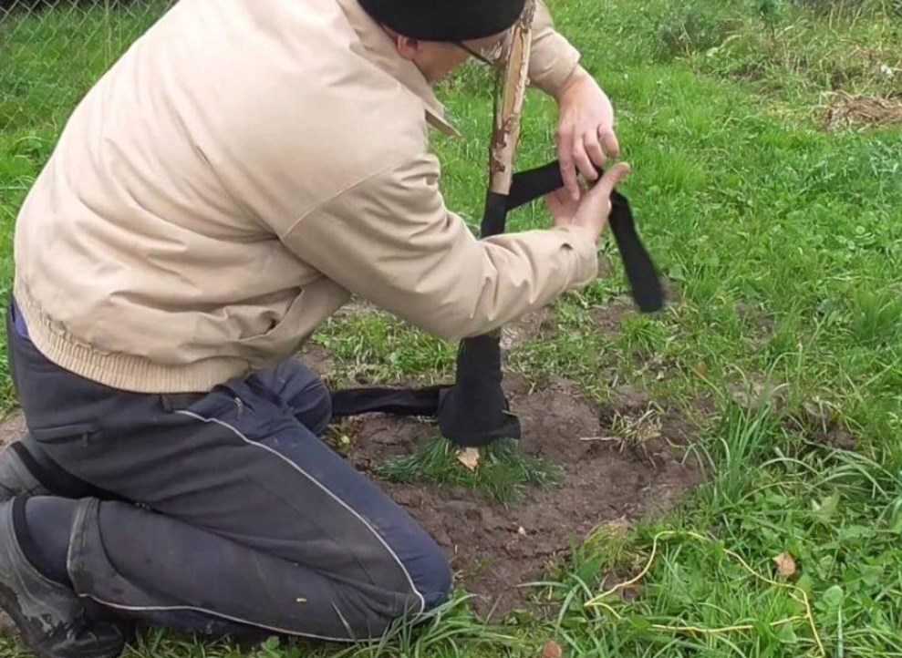 Далее необходимо обернуть ствол полиэтиленовой плёнкой или другим выбранным материалом – так грызуны точно не смогут добраться до нежной коры.