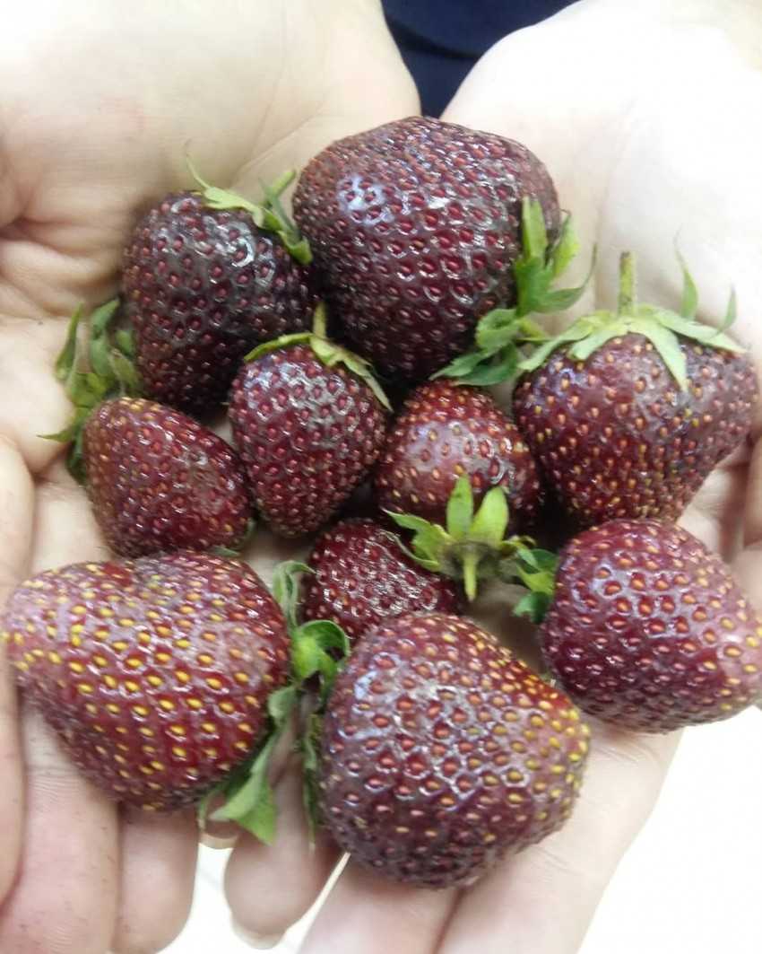 У плодов земляники сорта Чёрный принц необычная тёмно-вишнёвая окраска