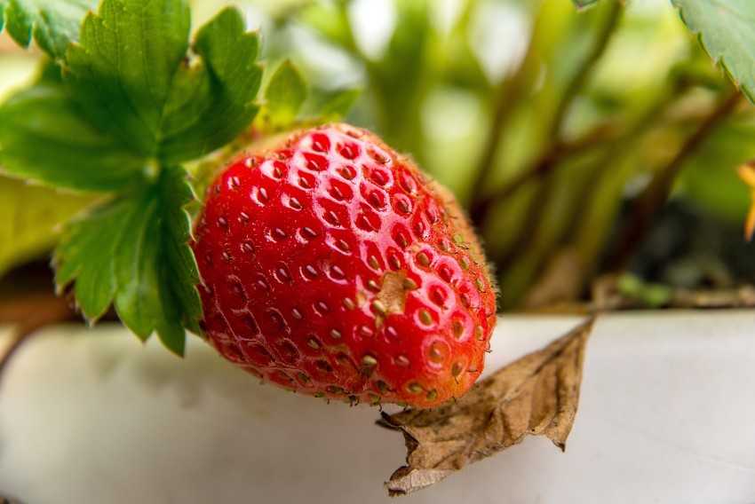 | Высокая урожайность: до 1 кг ягод с куста. | Нуждается в обработке против прозрачного земляничного клеща. |