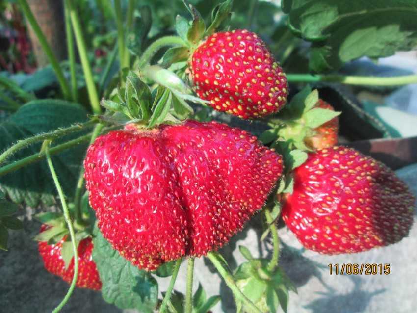 Особенности. Период плодоношения клубники растянуто волнообразный. От избытка азотных удобрений ягода теряет плотность. Нуждается в обычных подкормках кальциевыми и калийными удобрениями в период продуктивного цикла. На одном месте, при правильной агротехнике, может расти и плодоносить от 5 до 8 лет.