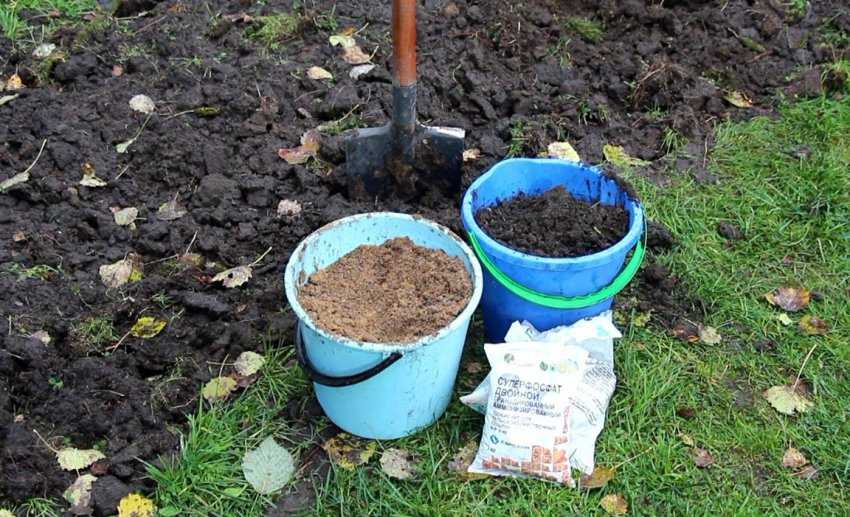 Грунт перекапывают на глубину в 30 см, внося на каждый 1 м² удобрение из 70 г суперфосфата, 5 кг перегноя и 300 г древесной золы. После удобрения участок разравнивают граблями.