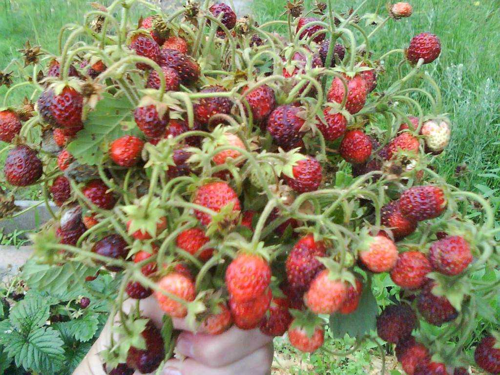 Цветение земклуники, это поистине невероятное зрелище! На возвышающихся над кустами цветоносах, одновременно открывается огромное количество цветов, образующих пушистые шапки. Завязываемость плодов на высоком уровне, период созревания затянут, первые спелые ягодки появятся в конце июня-начале июля. Плоды крупные, продолговатые с фиолетовым оттенком, они обладают хорошими вкусовыми качествами, и плотной структурой, лежкие, не разваливаются и не теряют формы.