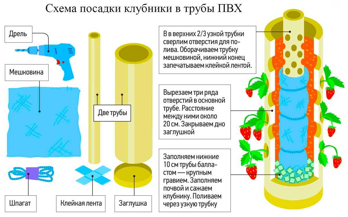 Кусок трубы должен быть чуть ниже роста садовода – это не только облегчит сбор урожая, но и посадку и уход.