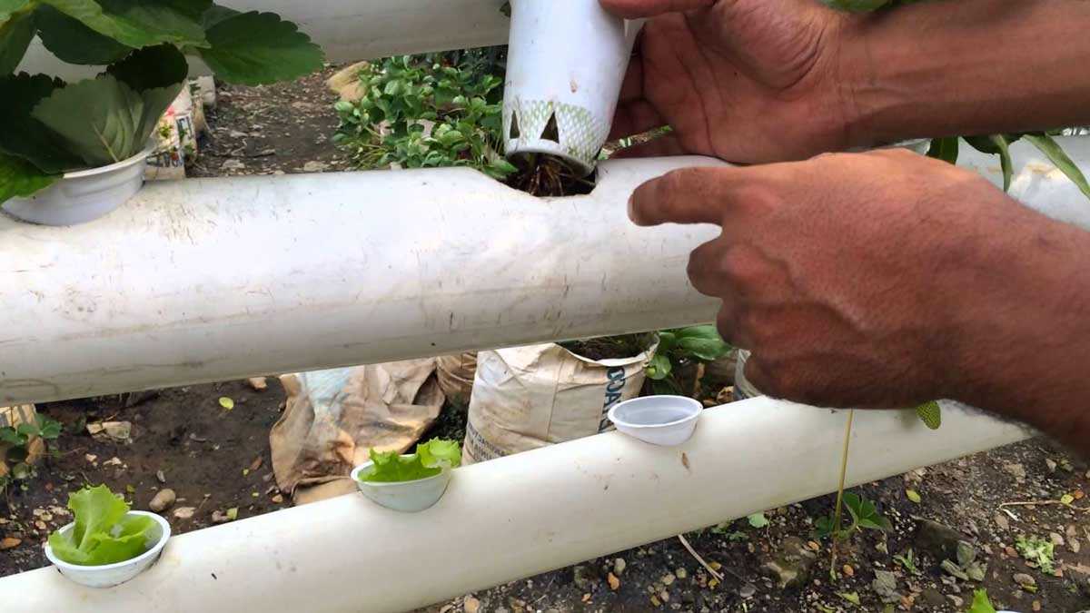 Важно! Перед установкой трубы меньшего объема, ее обматывают нетканым материалом и закрепляют веревкой, чтобы земля или корневая система не забивала отверстия. Нижний слив закрывают заглушкой. В трубе большего диаметра высверливаем отверстия для высадки рассады