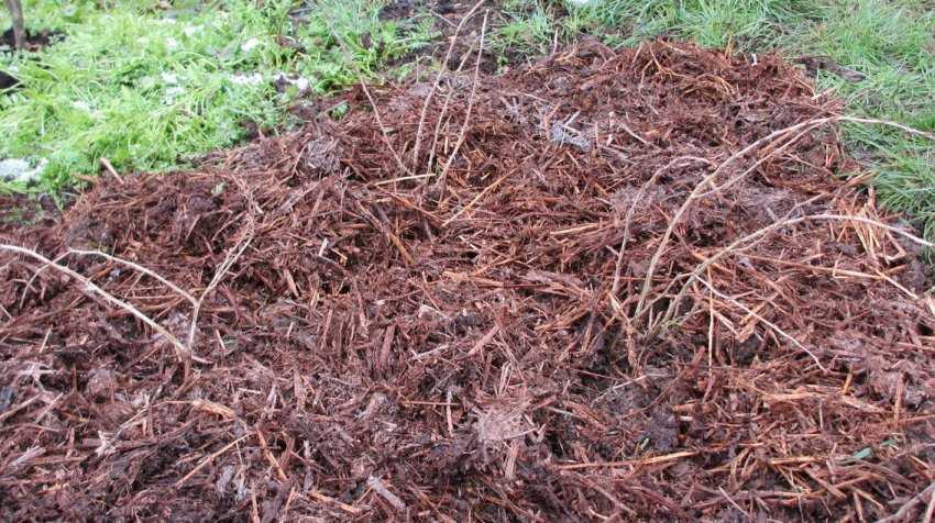 - После этого куст обильно поливается и мульчируется торфом – 3-4 сантиметра высотой.
