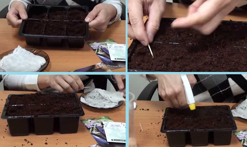 Семечки заглубляют на 1 см во влажную почву. До тех пор, пока они не прорастут, емкости с семенами накрывают пленкой или стеклом.