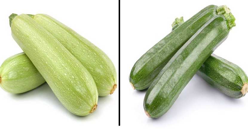 Кабачки отличаются жесткой кожурой светло-зеленого оттенка. Они растут на крупных размашистых кустах, формируя длинные побеги с мелкой листвой и цветами. Цукини обладает темно-зеленым окрасом. Для него характерна мягкая и нежная кожица. Такие плоды растут на компактных кустах с крупными листьями насыщенного оттенка.