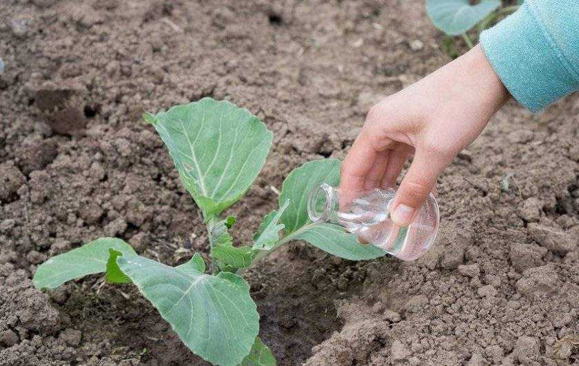 Поливать капусту необходимо в вечернее время суток, когда зашло солнце. Жидкость должна вливаться под корень и достигать комнатной температуры. Взрослые кустики поливают гораздо реже: 1 раз в 7 дней. В знойную жару растение также нуждается в дождевании.