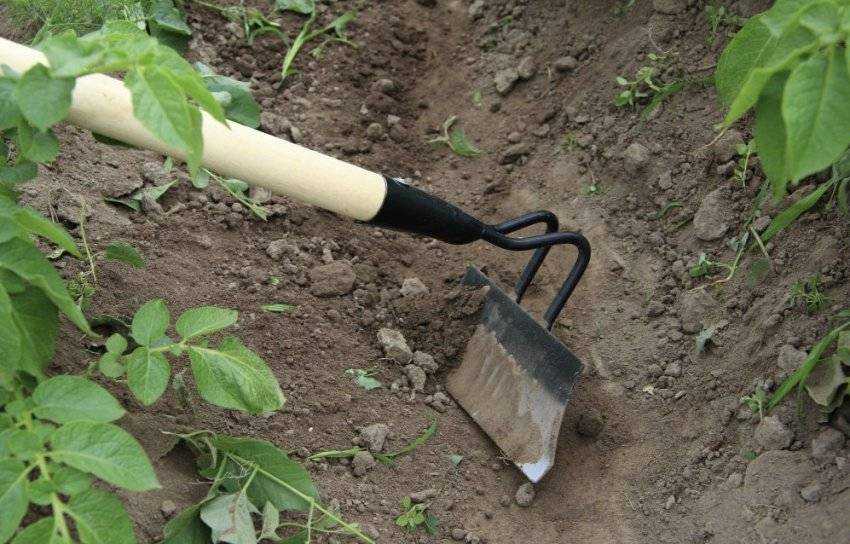 Окучивать картофель нужно 2 или 3 раза за период вегетации. Процедура необходима для интенсивного роста и формирования корневой системы и соответственно образования дополнительных клубней под кустом.