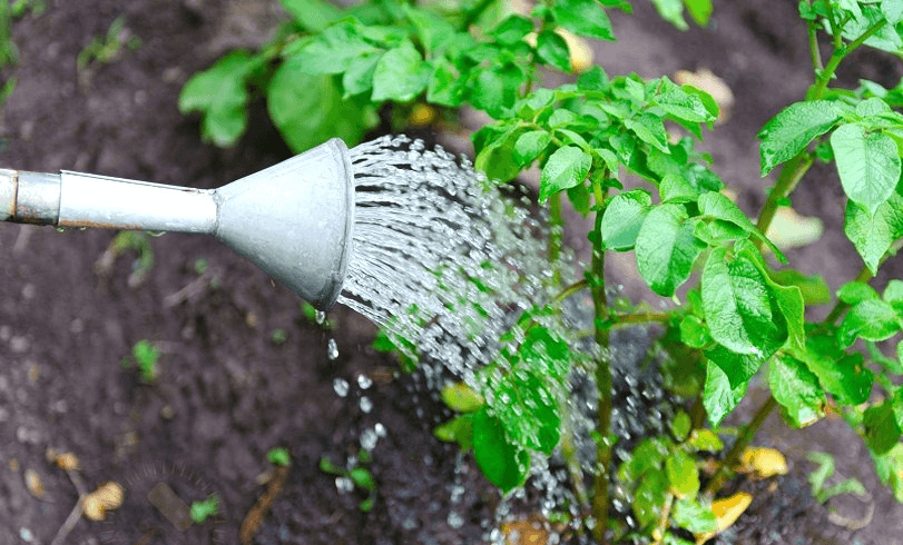 Лучше поливать картофель вечером, поскольку в утренние часы быстро встающее солнце может сжечь посадки, на которых остались капли воды