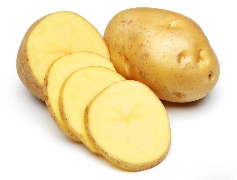 Мякоть кремового оттенка имеет однородную, без наличия пустот, структуру, после разрезания долго не темнеет, так как содержит малое количество крахмала (примерно 10-12%), что делает данный сорт диетическим.
