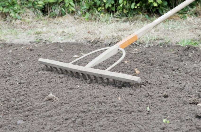 Весной участок надо подровнять при помощи грабель.