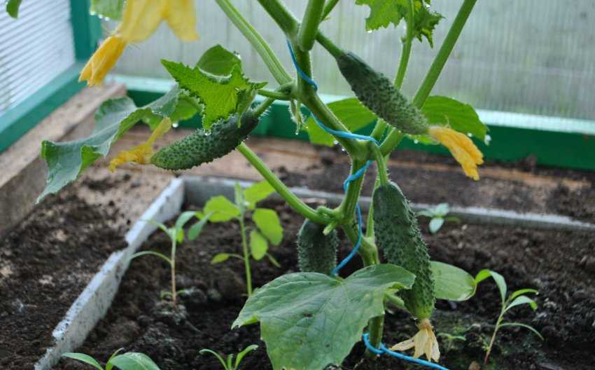 «Мальчик с пальчик F1» достаточно часто культивируется и рассадным методом — в теплицах или пленочных парниках, из расчета 3-4 растений на кв. м посадочной площади. Загущенные посадки негативно сказываются на продолжительности плодоношения и общей урожайности огурца.