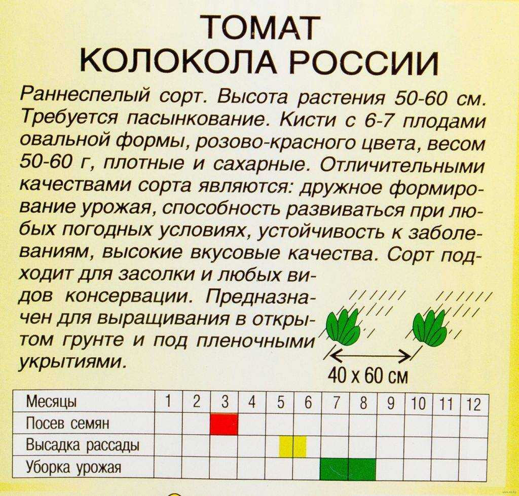 Сорт томата «Колокола России»: описание, характеристика, посев на рассаду, подкормка, урожайность, фото, видео и самые распространенные болезни томатов
